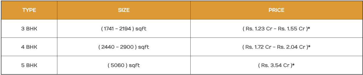- Super Luxurious 3, 4 & 5 BHK Apartments